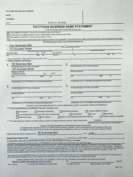 Please read all these instructions before proceeding with Fictitious Business Name Change s Refiling s Renewals. Registrar-recorder county clerk fictitious business name statement type of filing and filing fee check one new filings original-2600 for original filing with one business name on statement - 2600 changes in facts from original filing- requires publication refile- 2600 no changes in the facts from original filing. Welcome to the Los Angeles County Registrar-RecorderCounty Clerk Online Business Filing Registration System.