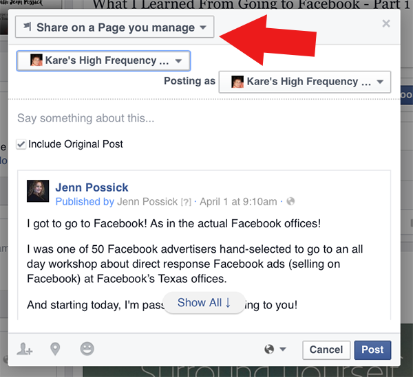 How To Share From Your Facebook Business Page To Your Personal Page Jenn Possick